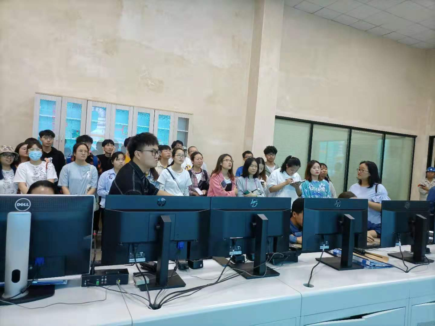本次參觀學習主要在中控室進行,李雪陽為參觀學生講解了西昌藍鼎正在進行的“攀鋼集團西昌鋼釩有限公司燒結(jié)2×360㎡燒結(jié)煙氣超低排放改造項目”,詳細的為大家介紹了此項目改造目的、生產(chǎn)工藝、技術難點等,并結(jié)合同學們在校學習的知識將理論與實踐結(jié)合起來回答了同學們的疑問。