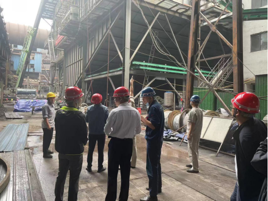 10月26日省生態(tài)環(huán)境廳第五監(jiān)察專員辦黃小平副主任一行到攀藍(lán)鼎1燒脫硫區(qū)域,檢查燒結(jié)機(jī)脫硫脫硝超低排放改造情況。